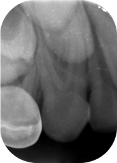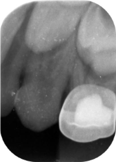 Figure 2. Periapical radiograph of the left maxillary primary canine demonstrating similar bifurcated root structure, indicating bilateral bi-rooted primary canines