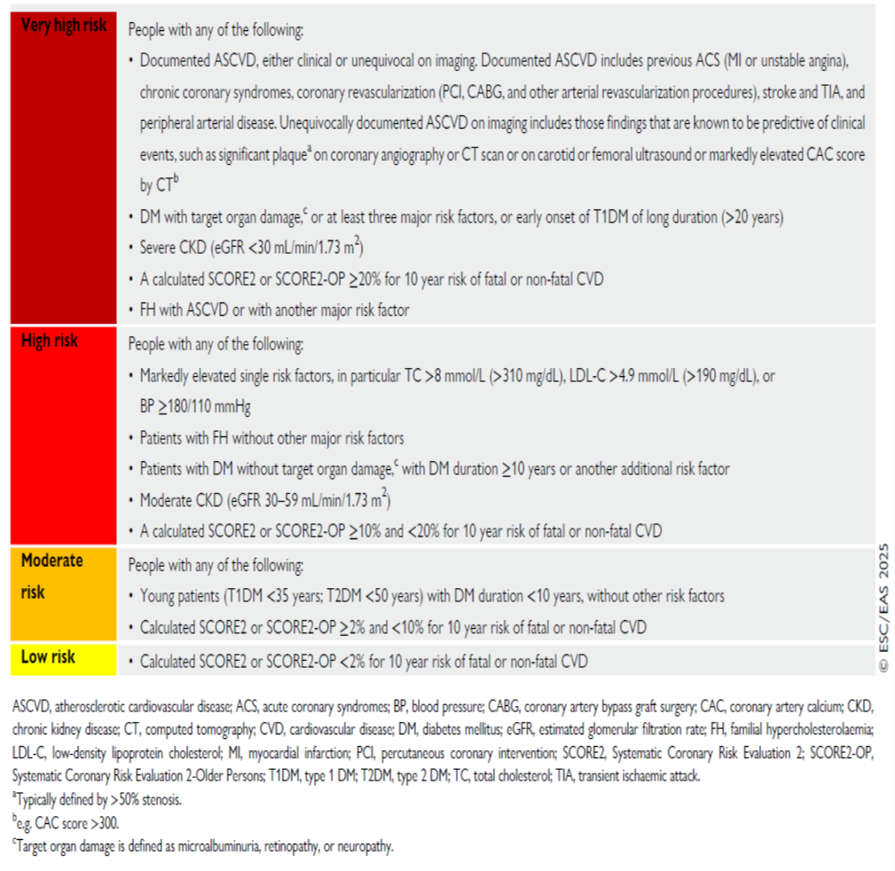 Table 2. Taken from 2025 focused update of the 2019 ESC/EAS guidelines for the management of dyslipidaemias [2]