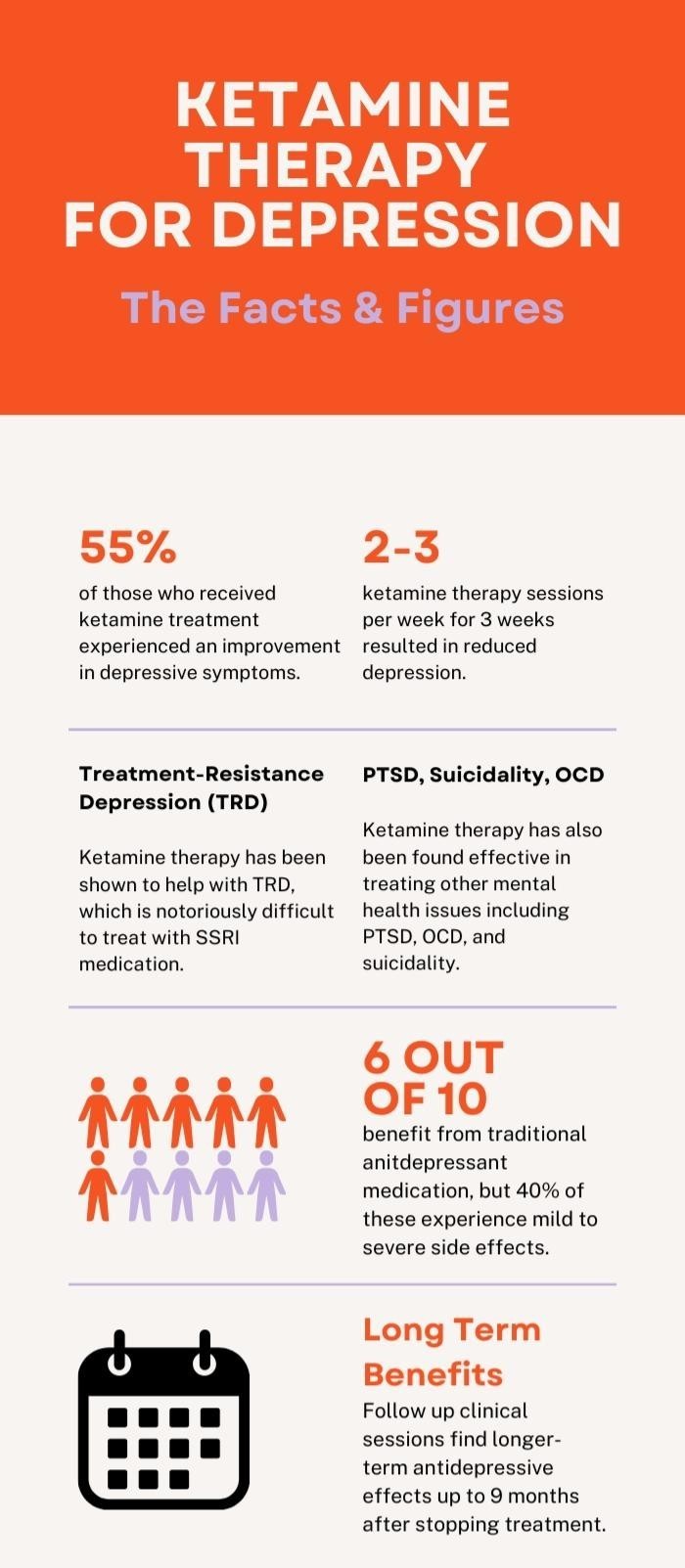 Ketamine treatment for Resistant Depression Disorder includes pharmacotherapy, psychotherapy Currently oral antidepressants are the mainstay form of pharmacotherapy there is an overwhelming need to address the obstacles in treating Resistant Depression Disorder due to the delayed treatment response with oral antidepressants and the poor response rate new modalities and drugs can be explored to alleviate the severity of symptoms while ketamine was initially approved as a general anesthetic, it has been repurposed to treat Resistant Depression Disorder, suicidal ideation, and other off-label uses such as substance-use disorders and Mood Disorders, PTSD, Bipolar Disorder, OCD.