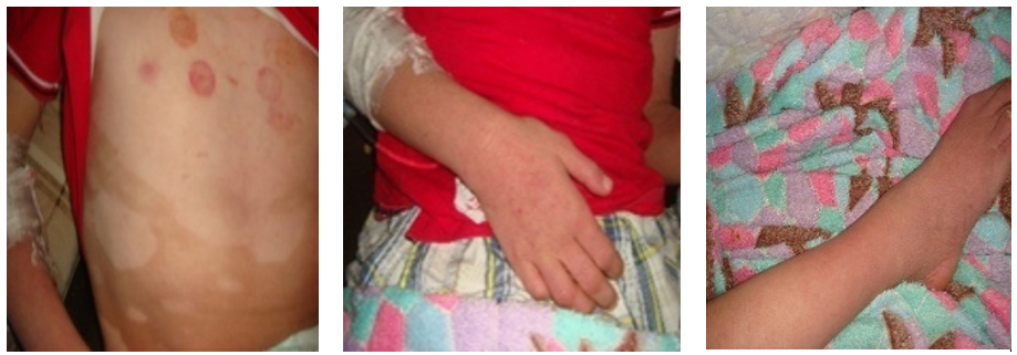 Figure 1. Cutaneous rash involving trunk, hands, and feet with oedema