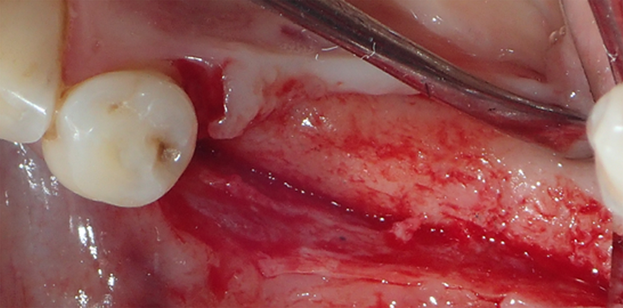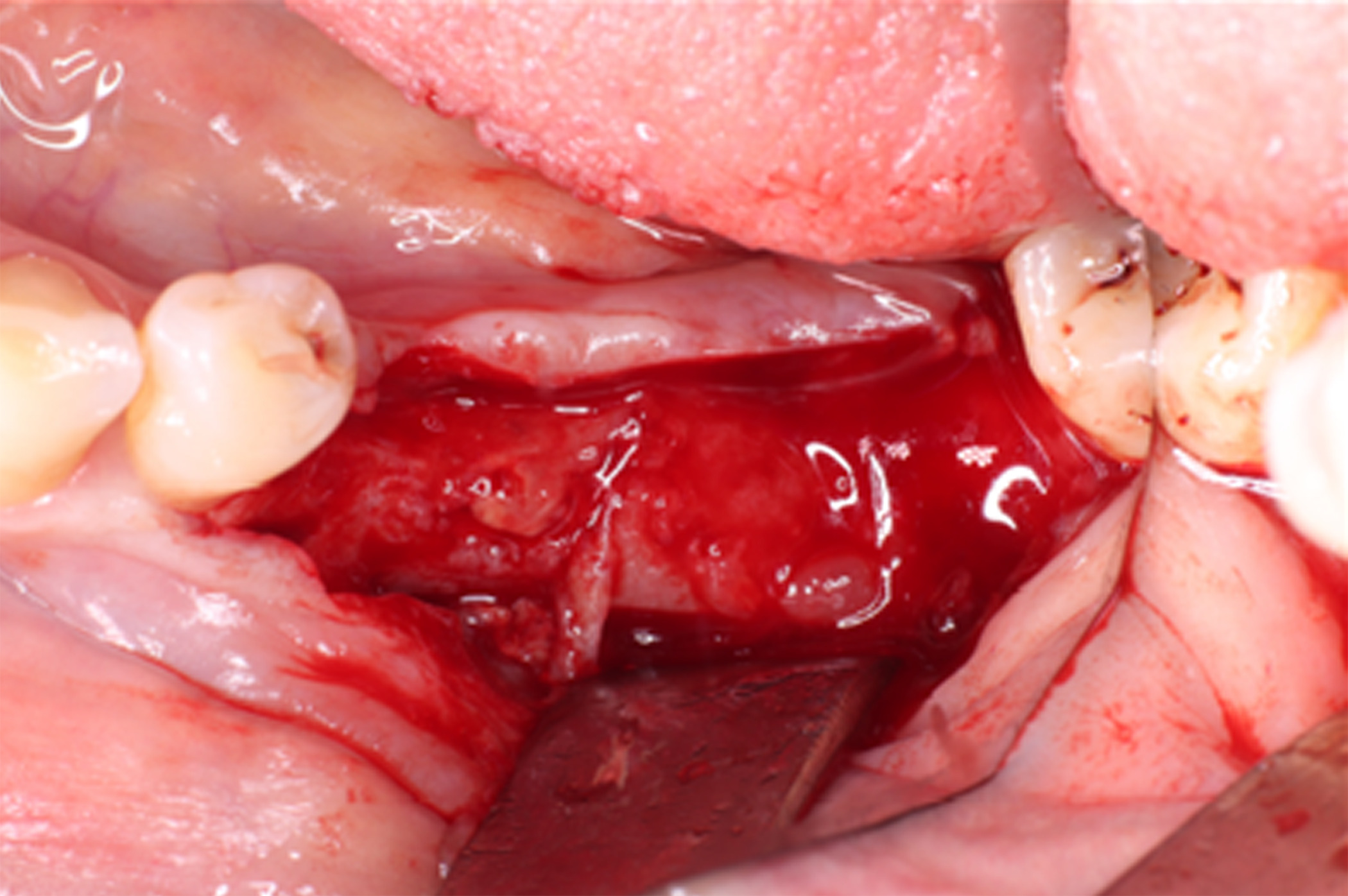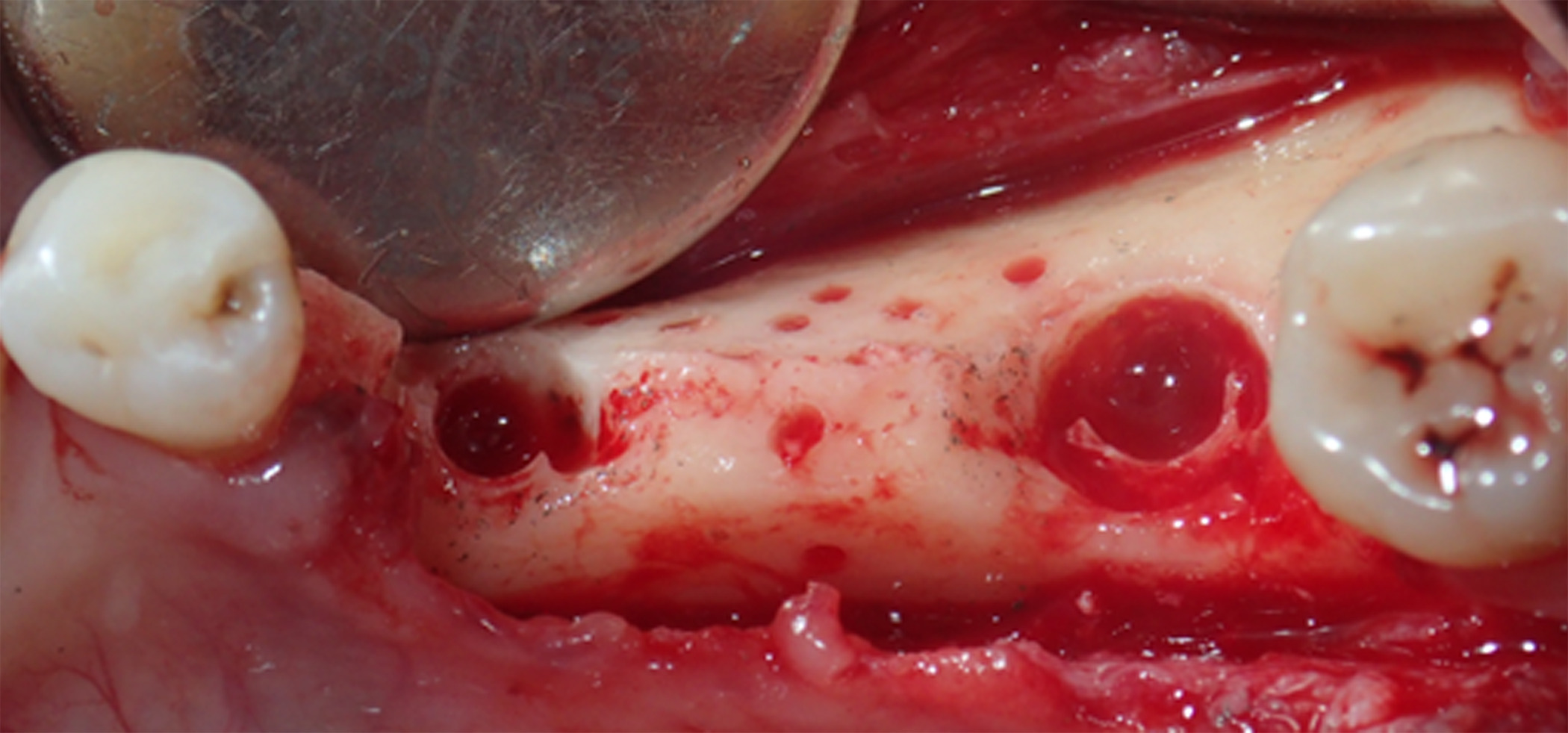 Figure 5. Buccal and lingual reaming was carried out to ensure bleeding and adequate irrigation of the bone graft