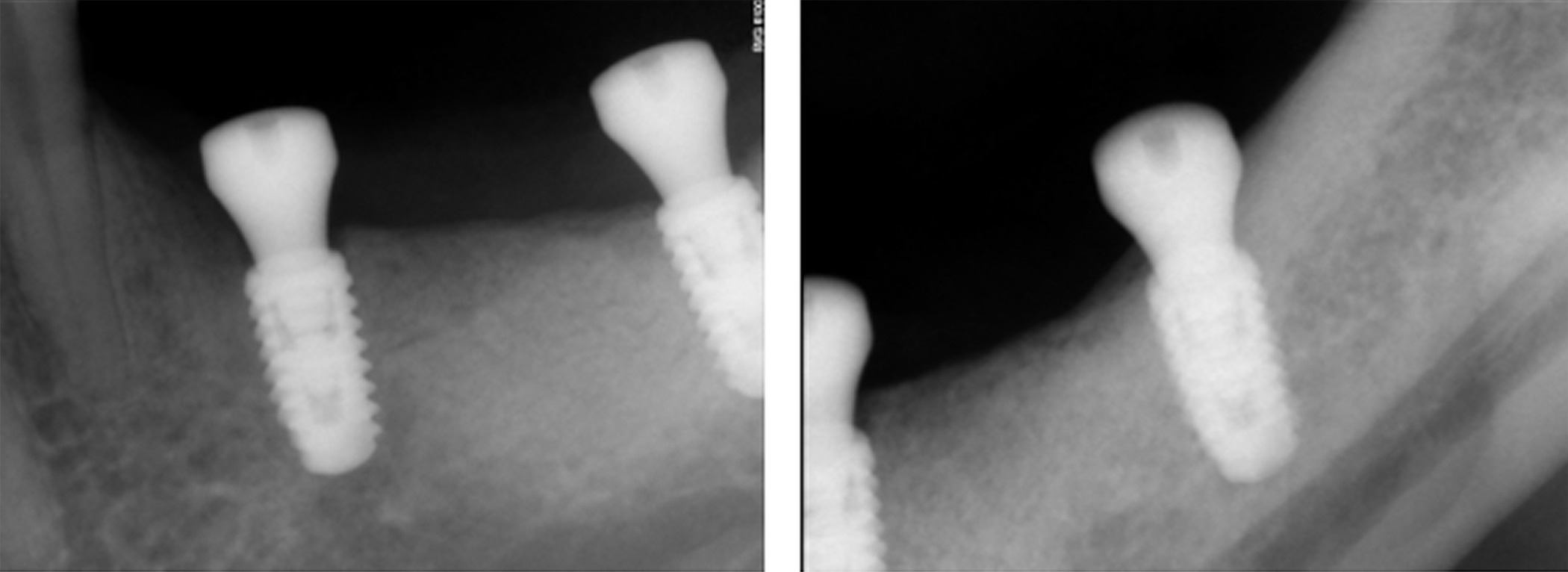 Figure 17. Periapical radiographs following placement of the healing screws showed excellent bone-implant interaction