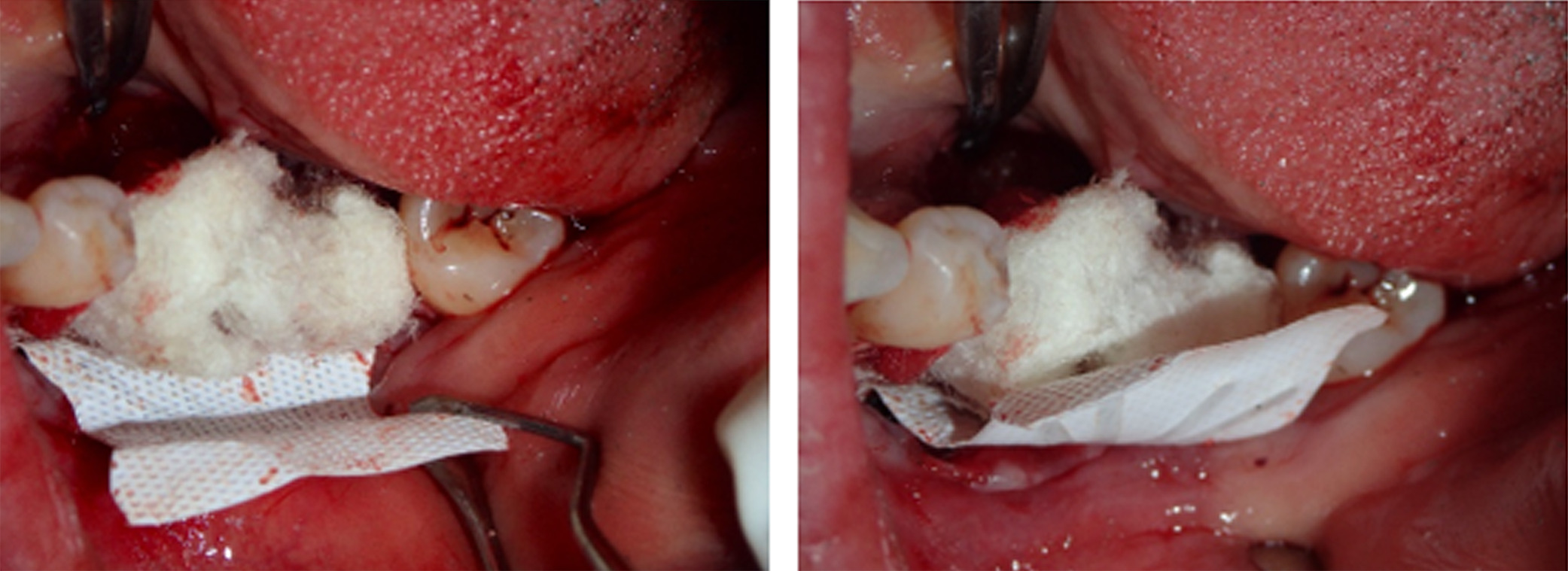 Figure 4. Due to the infection, both implants were explanted with subsequent curettage of the bed and application of a local antibiotic (clindamycin)