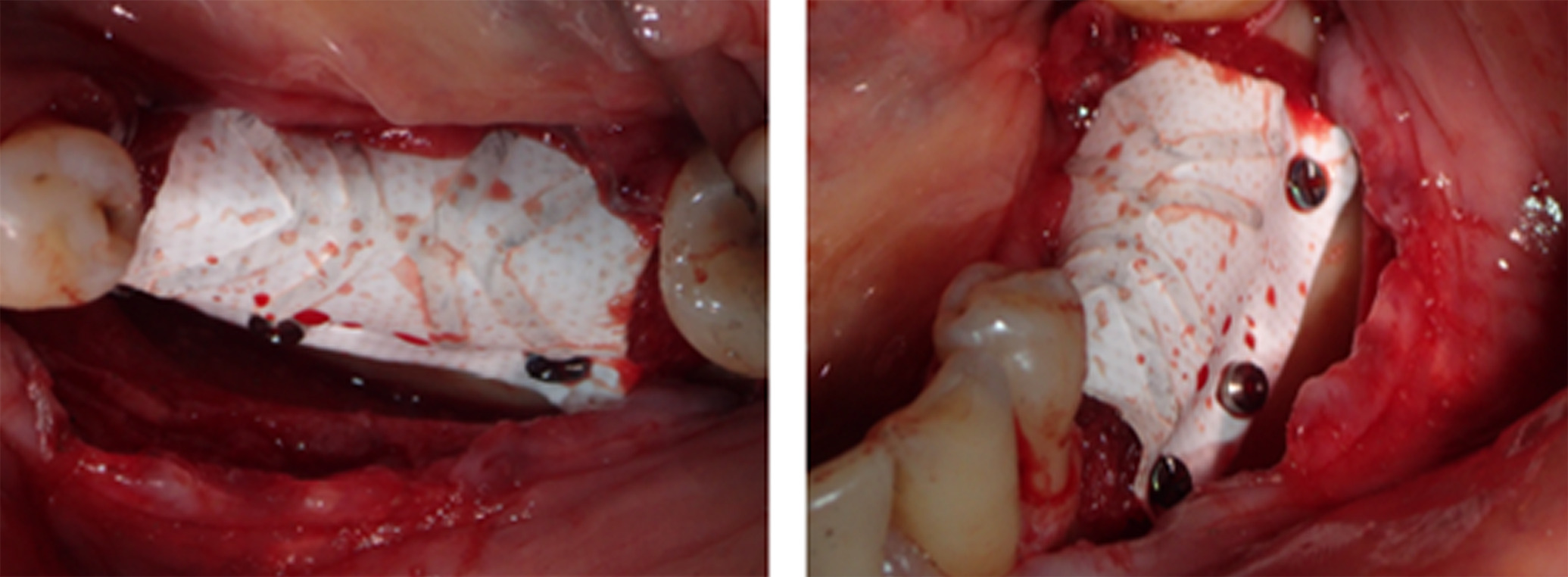 Figure 8. To maintain stability of the bone graft, a Cytoplast dense titanium-reinforced PTFE membrane was fixed with buccal and lingual pins
