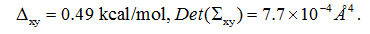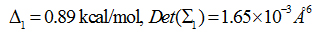 The brackets stand for statistical average and the superscript T transposes a single-row matrix into a single-column matrix. represents the determinant. is the 3×3 matrix of the fluctuations/deviations of the pulling center coordinates etc.in the bound state ensemble,