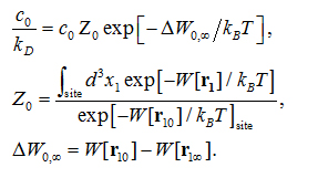 When the Ligand Fluctuations Can Be Approximated as 3D Gaussian, as in the case of AZM, all we have to do is to evaluate the fluctuations around the binding site. In this case, we have the dissociation constant, within the Gaussian approximation of the fluctuations at the binding site,