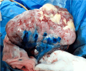 Figure 1. Blue dye in transoperatory, ovary tumor before to resection