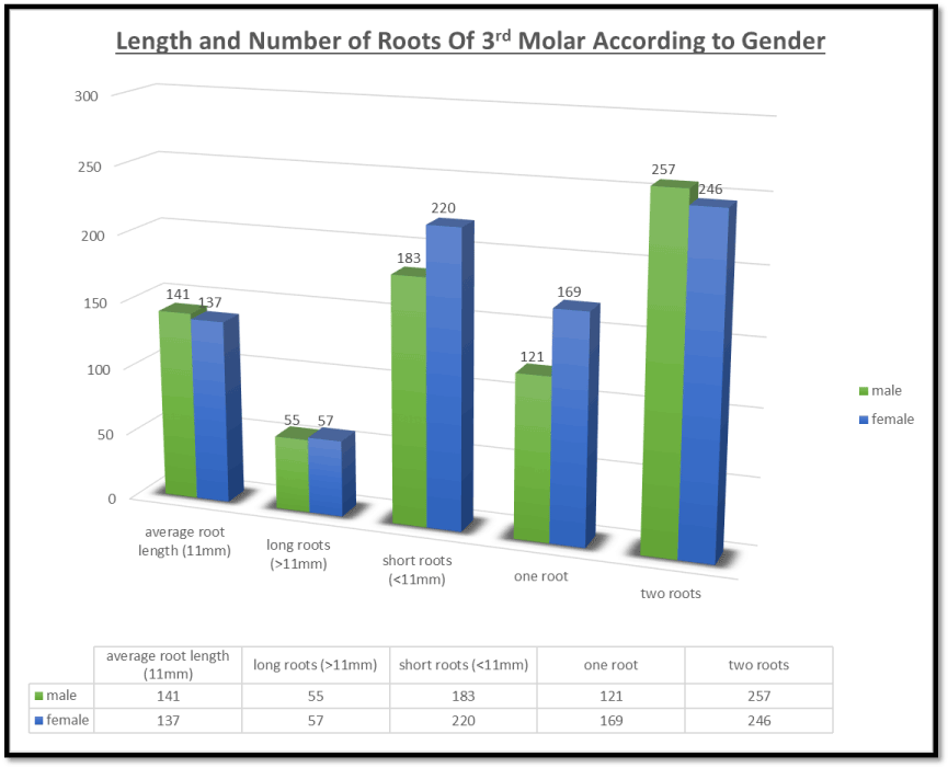 Figure 4. Length and Number of Roots of 3rd Molar According to Gender