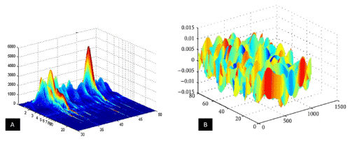 Figure 2. 3D Simulation of (a) FT-IR spectrum and (b) Raman spectrum of 6-Methoxy-8-[[6-Methoxy-8-[[6-Methoxy-2-Methyl-1-(2-Methylpropyl)-3,4-Dihydro-1H-Isoquinolin-7-yl]Oxy]-2-Methyl-1-(2-Methylpropyl)-3,4-Dihydro-1H-Isoquinolin-7-yl]Oxy]-2-Methyl-1-(2-Methylpropyl)-3,4-Dihydro-1H-Isoquinolin-7-ol