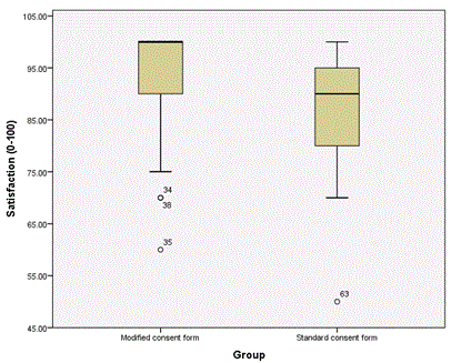 Figure 3. This figure illustrates the difference in patient satisfaction with the consent process between the current Department of Health consent form and the modified consent form.