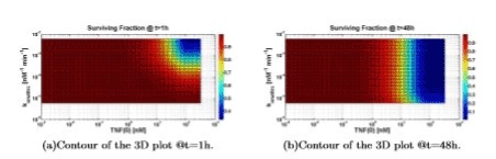 Figure 5 shows the temporal evolution of the surviving fraction computed for all the three values of TNF (0). The surviving fraction decreases as the TNF (0) increases.