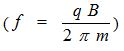 Then, we note that (q) is normalized in CGS. Consequently,, when converting from CGS to MKS, mc2=BvLq becomes mc2=BvL (10q), because 1 ab-coulomb is equal to 10 coulomb. Therefore, when using the MKS expression, f=qB/2πm, we must use f=10 qB/2πm, and we note: