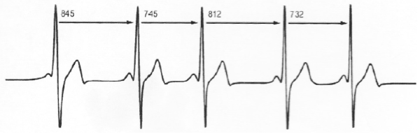HRV indicates a fluctuation of heart rate from beat to beat around an average heart rate. Thus, an average heart rate of 72 beats per minute (bpm) does not mean that the interval between successive heartbeats would be exactly 0.8571 sec. Instead, successive beats fluctuate or vary from approximately 0.5 sec to about 1.67 sec [74] (Figure A illustrates variation of R-R intervals).
