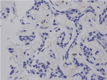 Figure 5.Cells showed intense staining for Ki-67 but no adenoid structures.