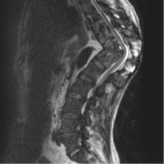 The MRI findings show the potential severe deformity associated with Pott disease. The risks associated with a surgical correction of the segmental kyphosis were unacceptable due to the absence of neurological impairment and the relative stability of his deformity.