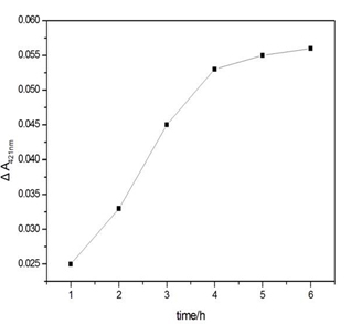 Figure S2. Influence of the Hg2+ capture time on the ΔA421nm of the sensing system in the presence of Hg2+. Experimental conditions: [SB4] = 150 nM, [SC4] = 150 nM, [Hg2+] = 100 nM, [hemin] = 50 nM, [ABTS] = 4 mM; and [H2O2] = 1.2 μM.