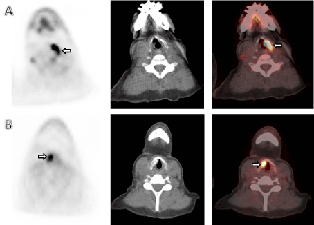 - Heller MT, Meltzer CC, Fukui MB, et al. (2011) Superphysiologic FDG Uptake in the Non-Paralyzed Vocal Cord: Resolution of a False-Positive PET Result with Combined PET-CT Imaging. Clinical Positron Imaging 3: 207-211.