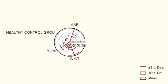2. There is statistical relation using Wilcoxon-matched test between γ-GT in Psa and healty control group for p<0.05 (p=0.40); β2Min the Psa and healty control group for p<0.05 (p=0.06).