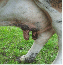 In addition, hyperemia, purple coloration and lesions of teats were recorded in certain proportion of animals. The less frequent clinical signs were paresis, regurgitation, diarrhea, and no abortions were reported. Four out of 56 animals that shown clinical disease died. The original figures (Figures 1, 2, 3 and 4) indicate some most prominent and visible clinical signs recorded during 2014 BTD outbreak.