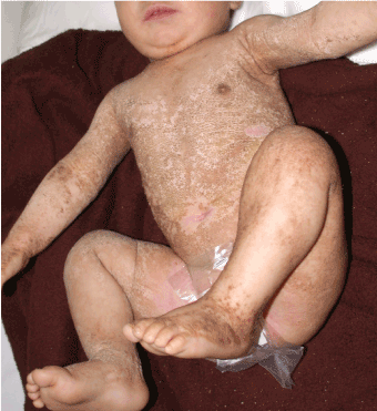 Figure 1a. Bilateral, extensive lesions that cover large areas of the body