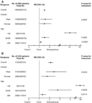 Figure 1. Relative risk of comorbid HBV or HCV in patients with schizophrenia versus non-schizophrenia controls