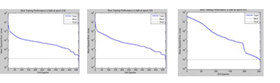 Experiments were performed to determine the best FFBP network to use. Figure10 introduces two different network performance analyses describing the importance of choosing the appropriate network parameters (training function, layer function, number of layers, and number of neurons etc.).