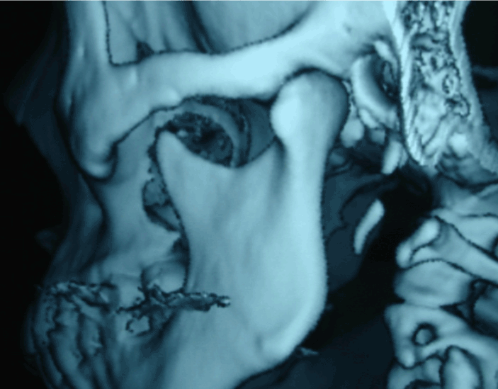 Figure 4. 3- D C.T. Scan shows resorption of posterior wall of left maxillary sinus.