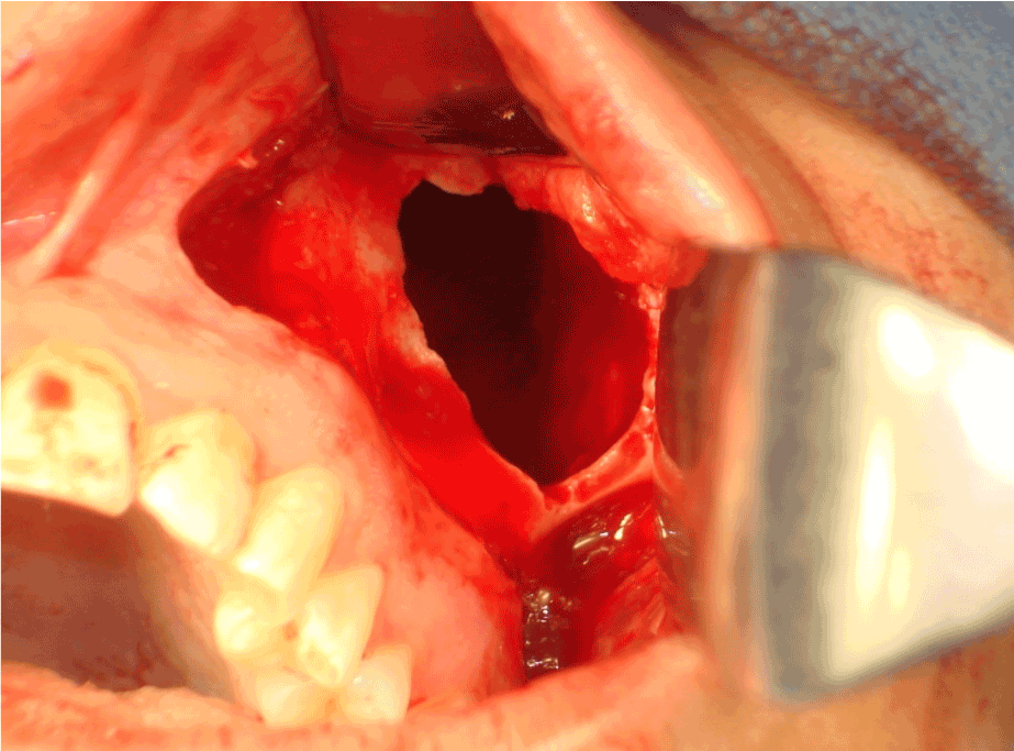 Figure 5. KCOT within left maxillary sinus is exposed through Caldwell Luc approach.