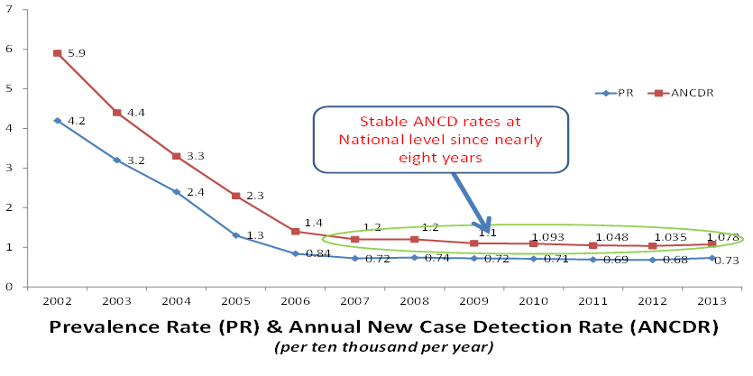 Figure 3. National Leprosy Eradication Programme (NLEP) data on Prevalence and Annual New Case Detection Rates in India.