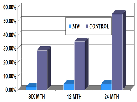 Figure 6. Relapse rate of Category II tuberculosis patients after treatment with MDT alone or MDT+ Mw (MiP).