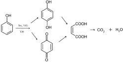 In literature, different analytical techniques were used and various hydroxylated intermediate compounds have been detected (mainly hydroquinone, p-benzoquinone, and catechol) because they come from the attack of the phenol ring at the first step of the reaction. Consequently, different phenol photodegradation pathways have been proposed [22-26].