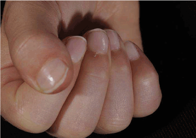 Figure 4. Puffy, restricted, shiny fingers – unable to make a fist.