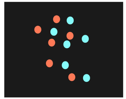 Figure 4. View of the target with the red field during the prolong fixation of one of the blue objects and a shift of the fixation to the right.