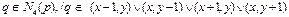 The binary image was analyzed from left to right, top to bottom. Inspection of neighboring pixels is done by reference to a pixel of adjacency q, and with respect to the coordinates of four neighboring pixels (Eq. 5) or coordinates of eigh neighboring pixels (Eq.6).