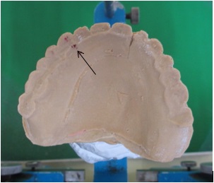 Figure 8. The arrow indicates the premature occlusal contact in BPOP.