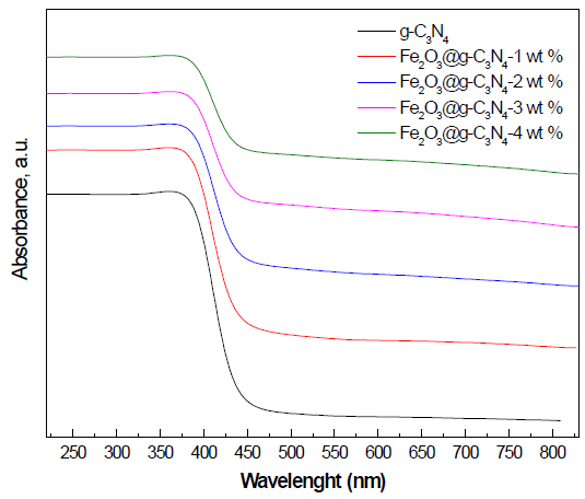 Figure 5. UV-Vis spectra of g-C3N4 and Fe2O3@ g-C3N4 nanocomposites.