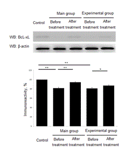 Figure 4. Treatment effect of anti-apoptotic factor BcL-xL. *- Р<0,01. **- Р<0,001.