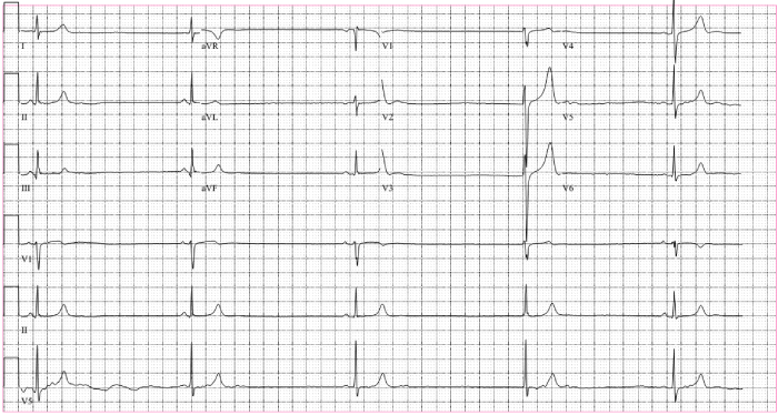 Figure 2: Electrocardiogram before patient was started on Etoposide. QTc interval 400 msec.