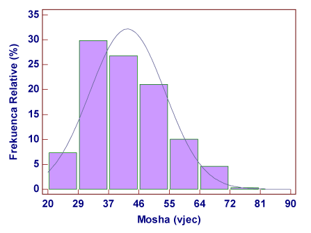 As it is shown in Graph 1 age is presented in the category of 10 years. A total of 39 patients or 11.9 % of the cases were ≤30 years old, a total of 110 cases or 33.5 % of them were 31-40 years old, 93 cases or 28.4 % of them were 41-50 years old, a total of 64 cases or 19.5 % of them were 51 -60 years old, 22 patients or 6.7 % of them were ≥61 years old. The results show predominance of the cases in age groups 31-40 years and 41-50 years old, with a statistically significant difference with other age groups ( χ2 Goodness of fit = 81.2 p < 0:01 ) . Age is not subject of normal distribution KS=0.009