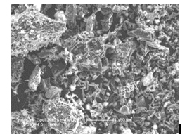 The morphology of the surface of the prepared Nanoporous activated carbon sample was examined using Scanning Electron Micrographs. These micrographs provide positive reception of the porosity of adsorbents and consequently a qualitative evaluation of their ability to adsorb the dye molecules in solution. Ipomoea Carnea Activated Carbon (ICAC) has many pores, small cavities and rough areas with micro pores which were clearly found on the surface. This shows that dolomite treatment created welldeveloped pores with uniform distribution on the surface of the precursor, therefore leading to the activated carbon with large surface area and porous structure. The morphological study by SEM of the above adsorbent shown in the Figure 1 revealed that it is highly porous in nature [18].