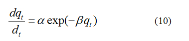 where, a is the initial adsorption rate (mg.g-1 min-1), b is the adsorption constant (g. mg-1) during any one experiment. To simplify the Elovich equation, assumed abt >> t and by applying the boundary conditions qt = 0 at t = 0 and qt=qt at t = t Eq (10) becomes;