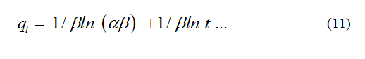 The Elovich model equation is generally expressed [16] as
