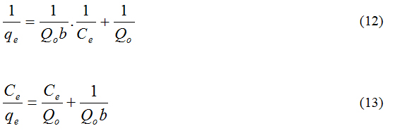 The Langmuir and the rearranged Langmuir equations are given below.