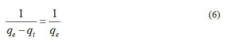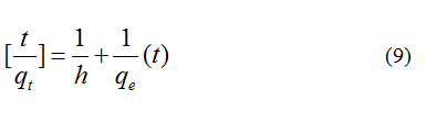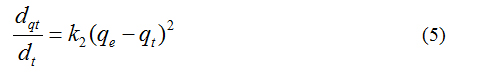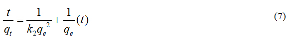 where, k2 is the rate constant of pseudo second order adsorption (g. mg-1. min-1). For the boundary conditions t = 0 to t = t and qt= 0 to qt = qt, the integrated form of equation (5) becomes.