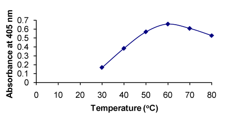Figure 7. Effect of temperature on the formation of RXN-NBD complex