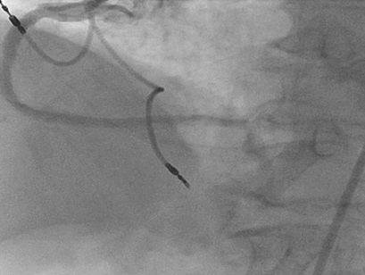 Figure 1. A right coronary angiogram performed with an 8 French JR4 guiding catheter.