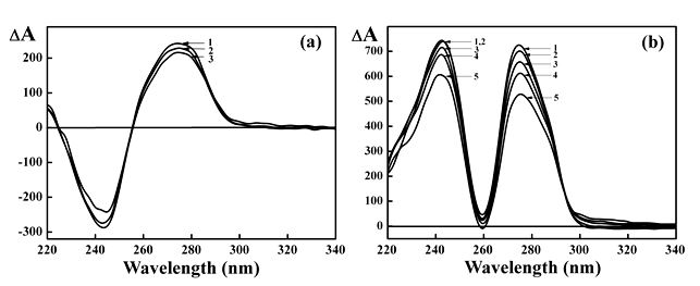 Figure 1a shows that the amplitude of band at λ∼275 nm in the CD spectrum of linear