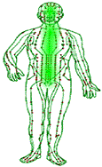 Through the above discussion we know that, any living body is a kind of complex structure of particle motion system and volume field motion system, the two motion systems function separately, along together form biological function of living body. For intelligent living body, intelligent system undertakes the function of regulation and controlling to living body. For example, nerve system in human body regulates and controls the particle motion system of human body. Who regulates and controls the volume field motion system of human body? We may suppose that, like nerve system in human body, there exists soul system which consists of soul center system (located in the parts of head and trunk of human body) and soul meridian system. In soul system, there flow some volume-field-like quarks (or “quark chi field” or “strong chi field”), they take part in thinking activities of brain (imaginal thinking) in terms of mind field, serve as energy to organs, and conduct life information along meridian system. Thus, intelligent system of living body is a kind of complex intelligent system which includes nerve system and soul system, nerve system is a kind of particle motion system, soul system is a kind of volume field motion system. Since volume-field-like quarks make strong interaction between them, they destroy the particle structure of soul system, therefore soul system exists in the form of invisibility (Figure 8).