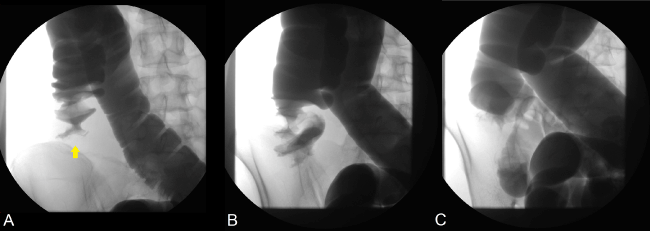 Figure 3. Fluoroscopic imaging of non-operative reduction using hydrostatic pressure from contrast enema.