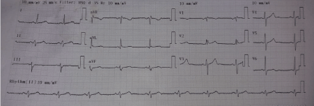 Figure 2. ECG showing normal ST segment in right sided chest lead v4R